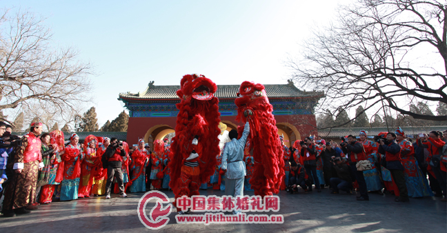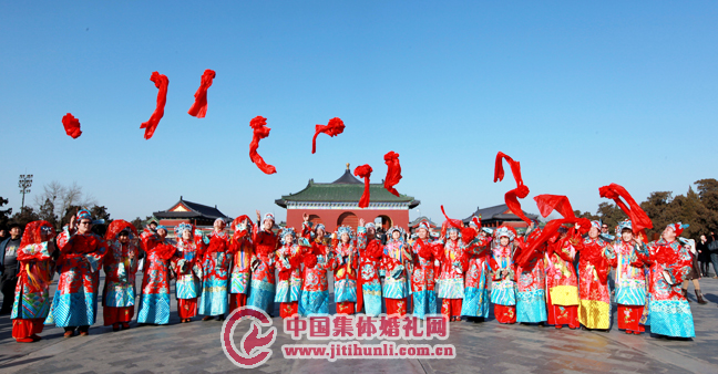 2018年1月1日,中式皇家集体婚礼在北京天坛公园举办。古都北京,文化源远流长,祈福圣地,天坛为皇家文化经典发祥地,是皇家龙脉之所在。广为流传,成为经典。北京的皇家中式集体婚礼是现为正宗,最为经典的中式婚礼。新郎身穿蟒袍玉带,新娘身着凤冠霞帔,威风锣鼓开道祝贺,旗锣伞扇,吹锣打鼓,好不热闹。新娘手持平安果,新郎三箭定乾坤,牵绣球,过火盆,迈马鞍,拜天地,挑盖头,合卺酒,点红烛------加上老北京中式婚礼的经典吆喝,成为无可比拟的世纪经典。尤其在2018年元月1日"爱你一生一世"的喜庆日子里,体验皇家中式婚礼,留作一生一世的浪漫记忆!