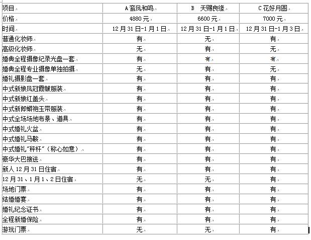 1)选择 "鸾凤和鸣"套活动费用为每对4880元