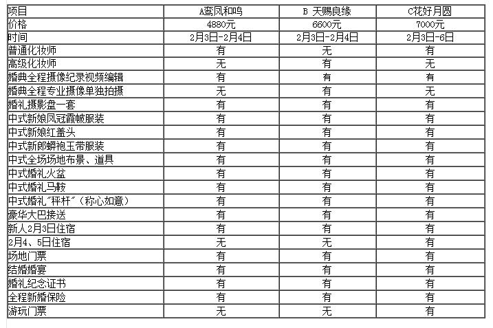 1)选择"鸾凤和鸣"套活动费用为每对4880元