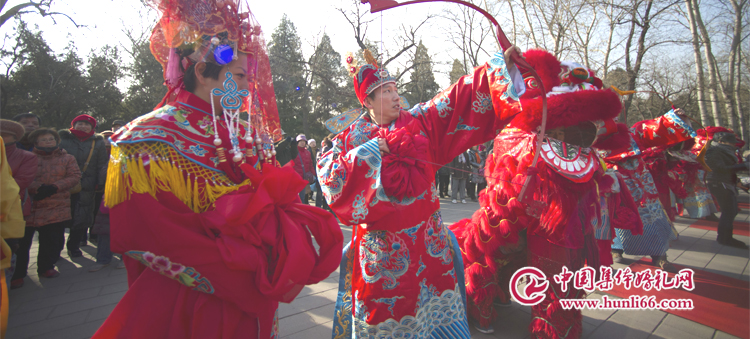 第二天:天地为媒,皇城见证。创世纪"爱你一生一世"皇家中式集体婚礼隆重启幕。新人身着凤冠霞帔,蟒袍玉带,由专业中式化妆师给您完美造型,新娘子们亲手为新郎官佩戴大红绣球,新郎官们亲手给新娘盖上红盖头,看!祥兽祝贺,天降吉祥。在三箭定乾坤后,新郎新娘手牵红绣球迈马鞍,平平安安;过火盆,红红火火。皇帝诏曰,情定"一生一世"经典的瞬间莫过于新郎手持秤杆为新娘挑起盖头"一看樱桃口,二看杨柳眉,三看吉祥如意喽!美丽的新娘们露出花颜的那一瞬间,一定是一生一世最美丽的瞬间。在天地牌位前行天地大礼,当然还有更难忘的,当新娘品尝一口子孙饽饽时,所有的新郎异口同声的问:"生不生?"那壮观的场面一定令您"一生一世"永远难忘,你们猜,新娘子们会怎么回答那?最后祝新人朋友们同心永结,天长地久!中午,新人们享用婚宴盛典,燃点起龙凤烛台,共饮合卺美酒,合影留念,记录下在公元2018年2月4日"爱你一生一世"最浪漫的一幕一幕。祝愿各位新人举案齐眉,鸾凤和鸣,白头到老,永结同心。