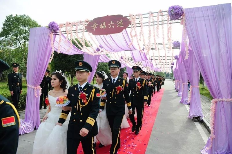 一心装满国,一手撑起家,家是最小国,国是千万家……”红地毯、绿军装、白婚纱,一曲《国家》写意了婚纱邂逅军装的神圣与浪漫,诠释了忠诚与爱情的完美交融。正值党的十九大隆重召开,近日,火箭军某旅为39对新人举行了“共庆十九大,携手筑爱巢”集体主题婚礼。