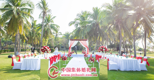 2015年2月9日第五十九届三亚“浪漫天涯”集体婚礼隆重开幕,新年新气象红色鲜花,寓意新年红红火火。