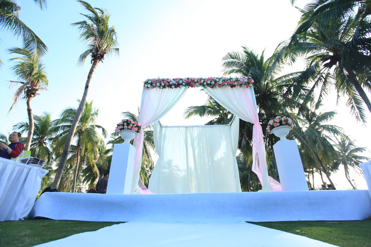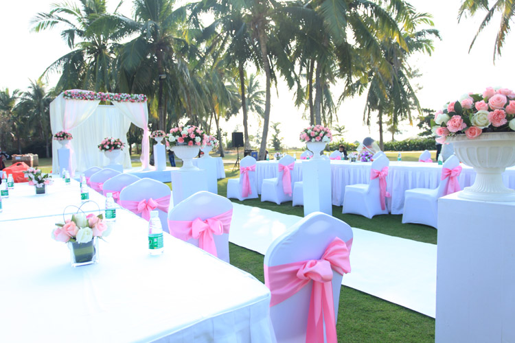 三亚草坪婚礼:草坪婚礼适合湖边草坪或依山傍水,草坪婚礼是新人最喜欢的个性婚礼。